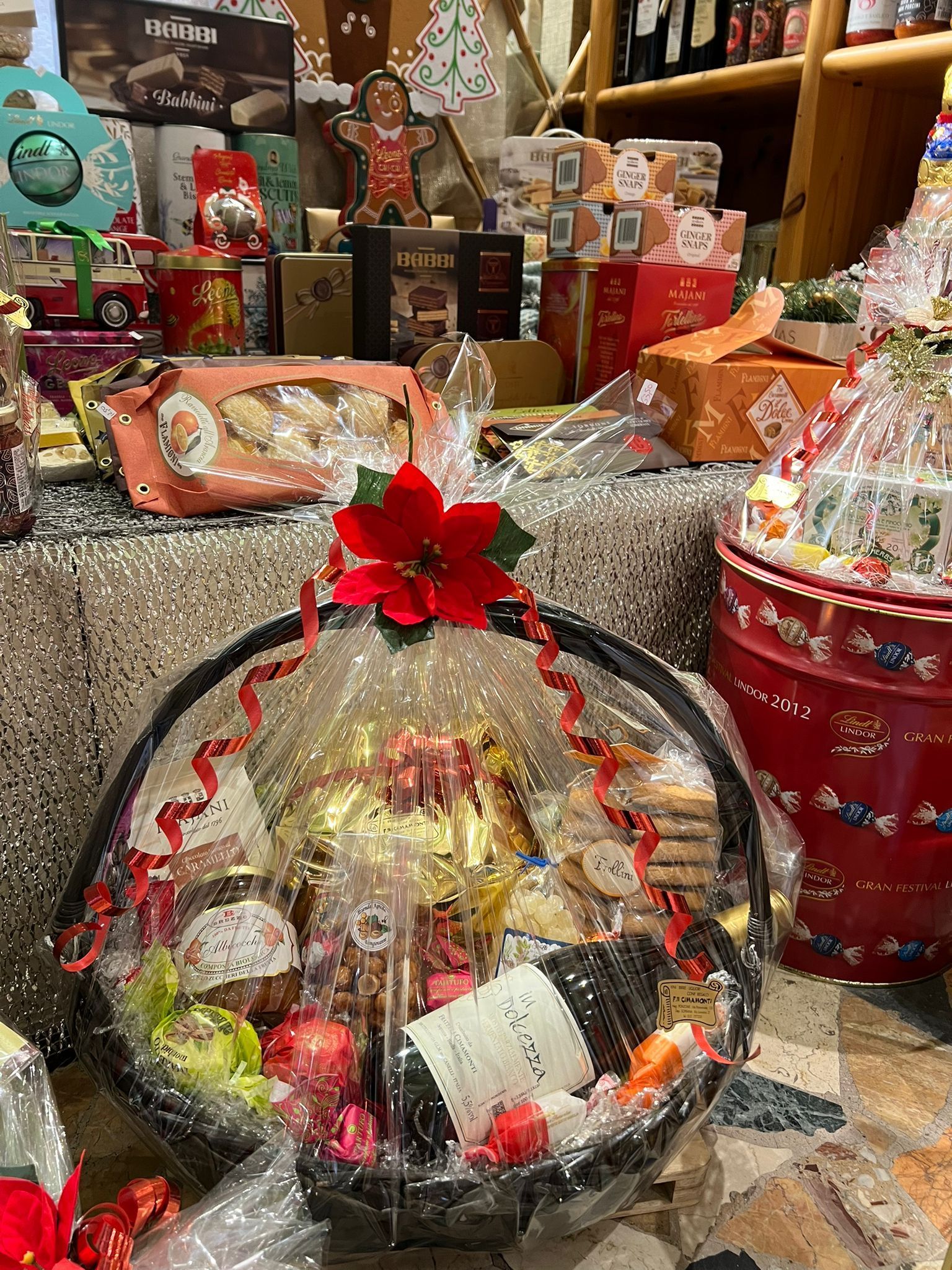 Lasciatevi avvolgere dall’atmosfera delle feste: il calore delle luci, le tavole imbandite, i brindisi che uniscono. Nei nostri cesti troverete vini selezionati, liquori pregiati e piccole eccellenze locali capaci di trasformare un semplice regalo in un gesto che scalda il cuore.